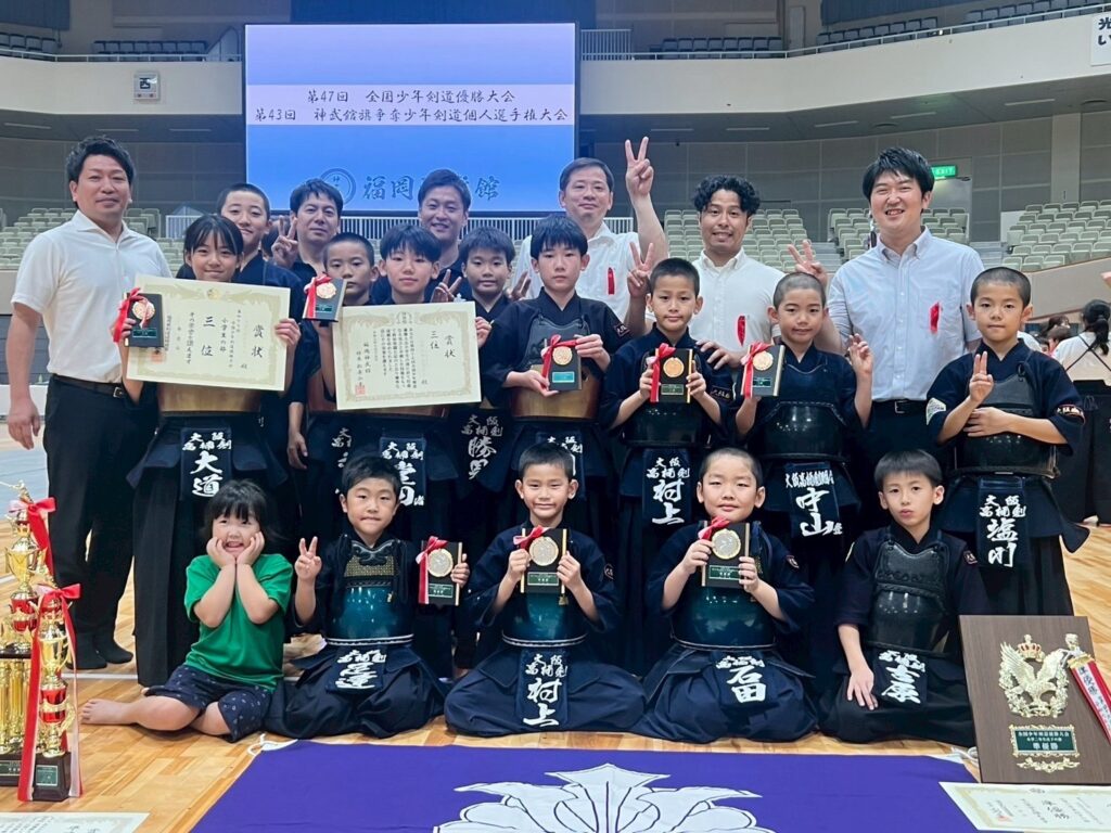 令和7年8月15日・16日、北九州にて開催された「全国少年剣道優勝大会」および「神武館旗争奪少年剣道個人選手権大会」に、当道場から総勢20名の高楠剣士たちが参加いたしました。